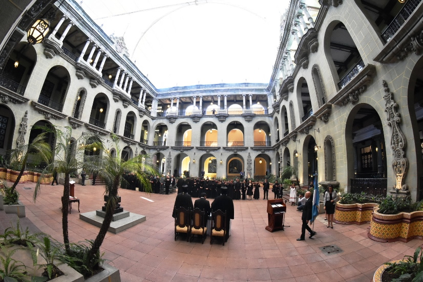 El miércoles por la tarde, Su Santidad y la Comitiva Patriarcal, realizaron una visita a las instalaciones del Gran Teatro Nacional, obra monumental de la arquitectura y la escultura contemporánea de Guatemala.