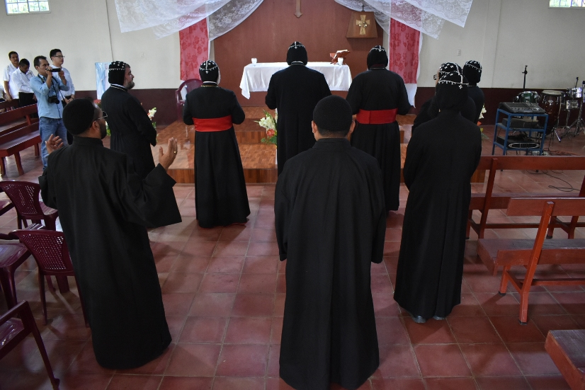 Su Santidad, después de llegar a Chel, presidió la celebración de la Divina Liturgia en la que concelebraron los demás arzobispos, monjes y presbíteros.
