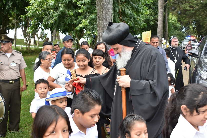 Después de la Santa Misa, los niños de la parroquia Espíritu Santo de Ahuachapán, presentaron a Su Santidad y a la comitiva patriarcal algunos recuerdos.
