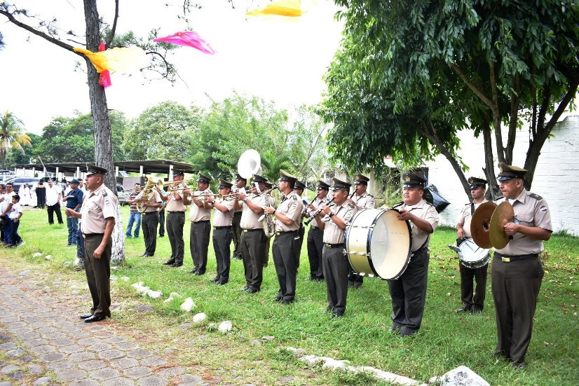 También estuvo presente la banda marcial de la base militar, quien entonó los himnos de El Salvador y de Siria, para dar la bienvenida a Su Santidad. |