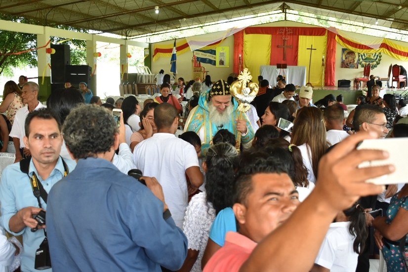 El lunes 11, por la mañana, Su Santidad, acompañado de la comitiva patriarcal, llegó hasta la sede de la parroquia de Jesús Buen Pastor de El Amparo Agua Tinta.