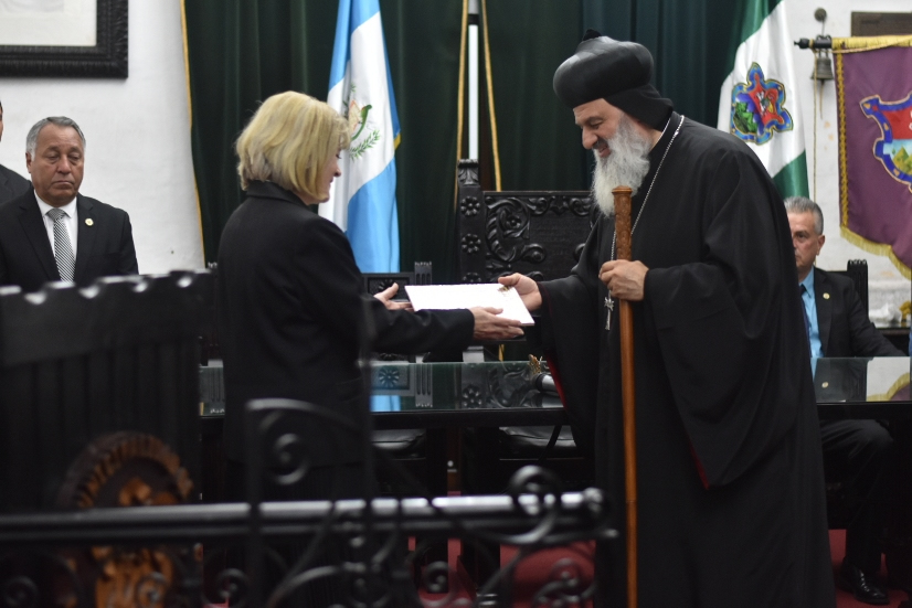 En el Ayuntamiento de la Antigua Guatemala, La Alcaldesa Municipal y el Concejo, celebraron una sesión extraordinaria en la que se otrogaron las llaves de la ciudad a Su Santidad y se le reconoció como Visitante Distinguido.