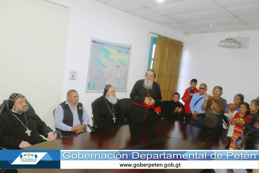 El gobernado de El Petén Licenciado Víctor Manuel Sigüenza, recibió a Su Santidad y a la comitiva patriarcal en el aeropuerto de Santa Elena, a su llegada a Petén.