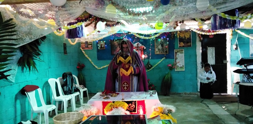 El viernes por la noche, en la sede en donde se reúne la pequeña y naciente comunidad de la Colonia Rayos del Sol de Mazatenango, el arzobispo llegó para celebrar la misa.