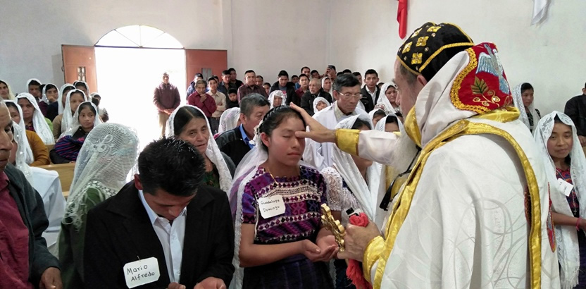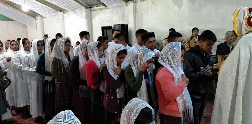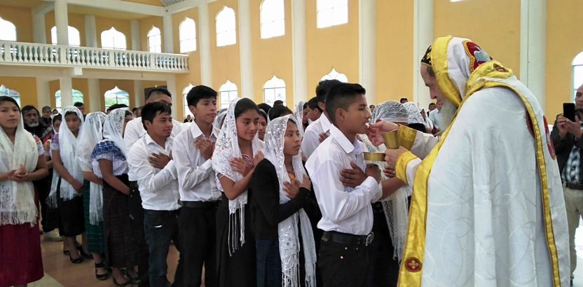 Hacia el final de la mañana, Mor Santiago Eduardo, acompañado por el párroco Padre Hugo Patzán, presidió la liturgia para administrar la confirmación y el envío misionero a 26 hermanos.