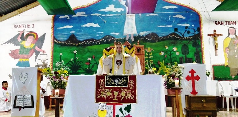 Después de la formación el arzobispo presidió la celebración de la Divina Liturgia con los hermanos de la comunidad de Tzisbaj, Jacaltenango, Huehuetenango.