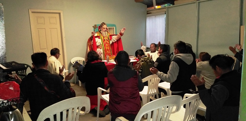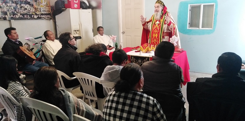 El arzobispo celebró la misa y administro los sacramentos de la iniciación cristiana a dos niños, hijos de miembros de la comunidad local.