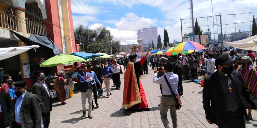 Seguidamente, por dos horas, el arzobispo recorrió, a un paso acelerado muchas de las calles del pueblo de San Juan Comalapa, para bendecir al pueblo.