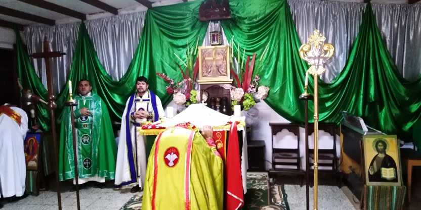 El jueves 18, por la noche, el arzobispo presidió la celebración de la Divina Liturgia de Santiago en el seminario Santa María del Nuevo Éxodo de San Lucas Sacatepéquez.