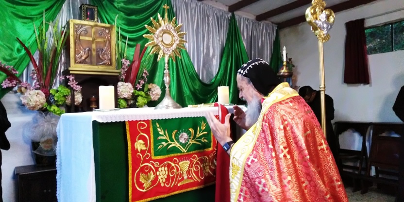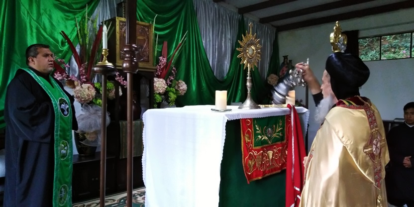 El miércoles 26, por la mañana, en el Seminario Santa María del Nuevo Éxodo, de San Lucas Sacatepéquez, Mor Santiago Eduardo presidió la adoración al Santísimo Sacramento y el canto del Oficio Divino.
