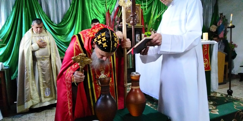 Dentro del marco de la celebración, el arzobispo hizo entrega a los presbíteros, del Santo Crisma, consagrado por Su Santidad el Patriarca junto a todo el Santo Sínodo, así como de los óleos de los catecúmenos y de los enfermos, que fueron bendecidos recientemente por el arzobispo.