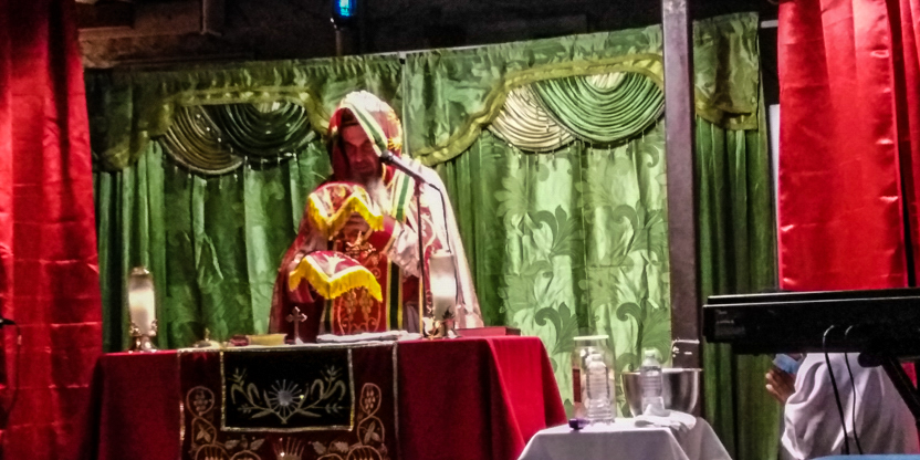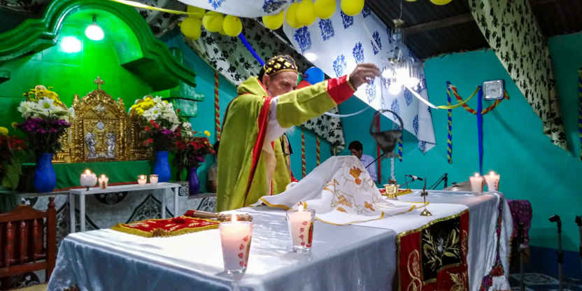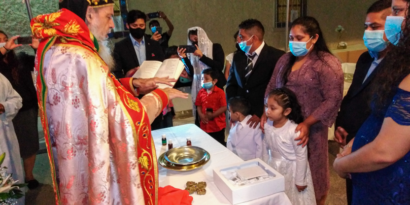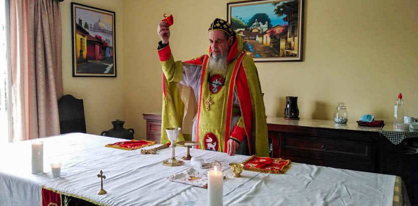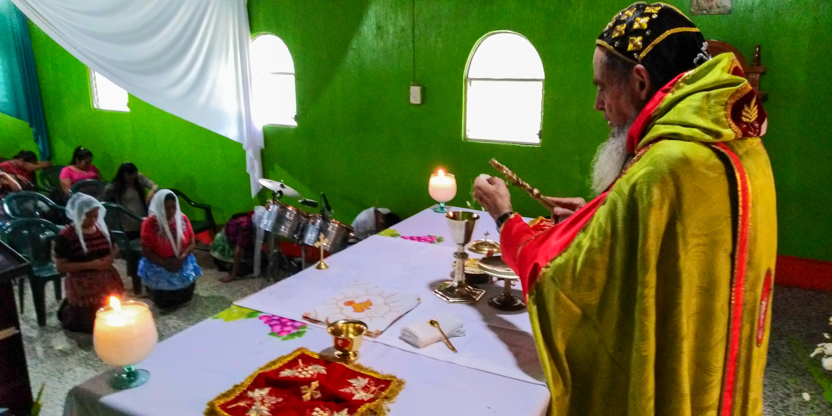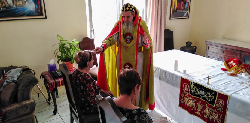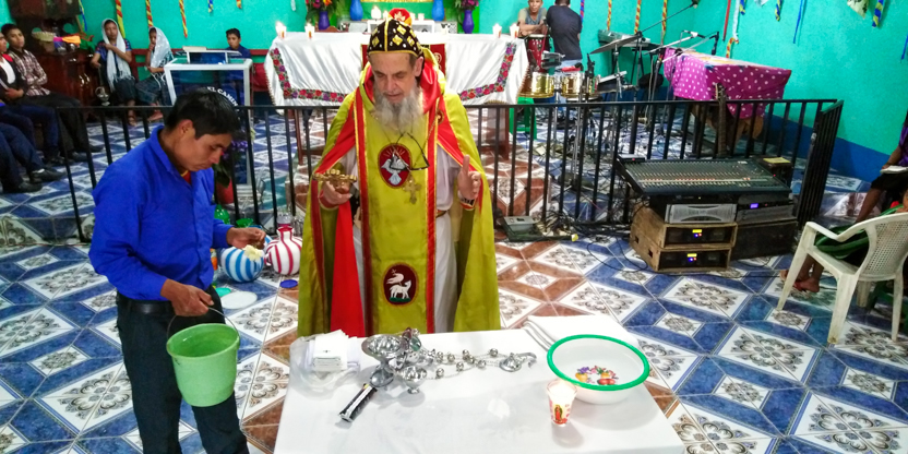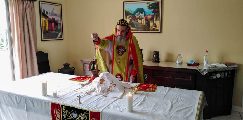 La divina liturgia se celebró en la casa de la familia Carías en San Bartolo Milpas Altas, en donde está residiendo actualmente doña Zoila.