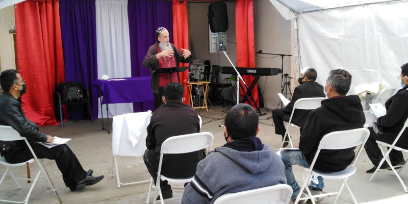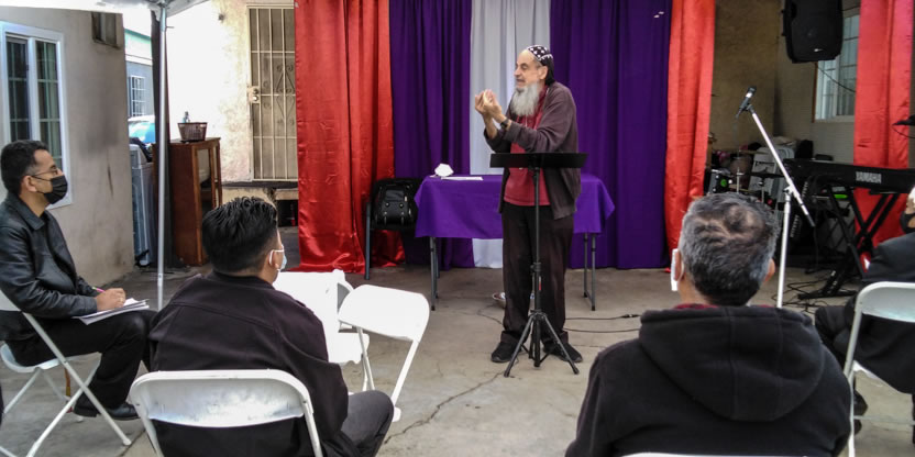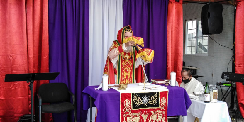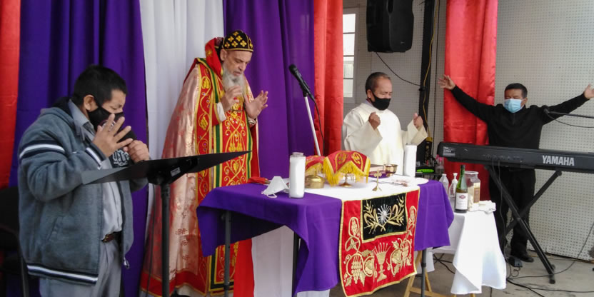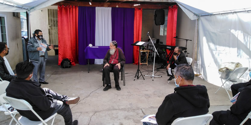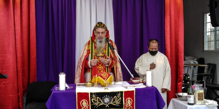 El domingo 13 de diciembre, en el patio posterior de la residencia del Hermanos Ronaldo, para cumplir con los requisitos sanitarios establecidos en California, el arzobispo presidió la celebración de la Divina Liturgia para servidores de las comunidades de la Parroquia de San Miguel Arcángel.