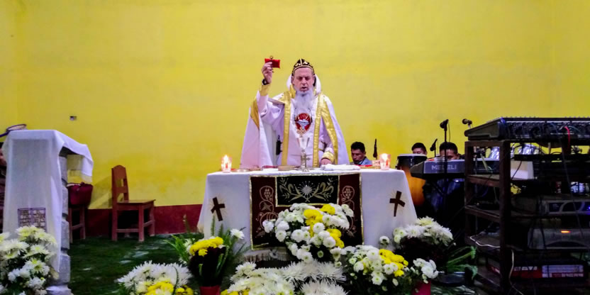 Hacia el final de la tarde del vernes 25, el arzobispo presidió la celebración de la Divina Liturgia con los hermanos de la parroquia de la Santísima Trinidad de Uspantán, que estaban participando en gran número.