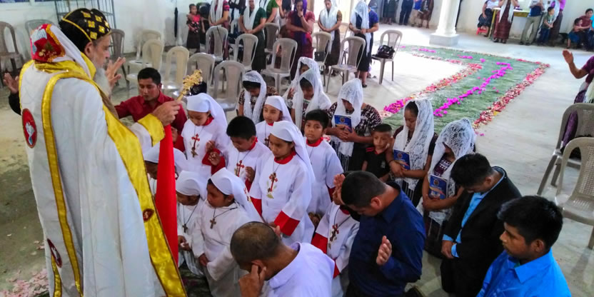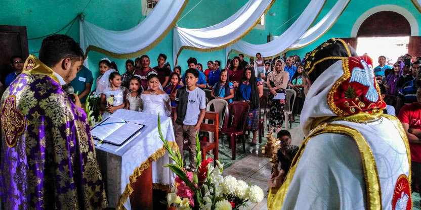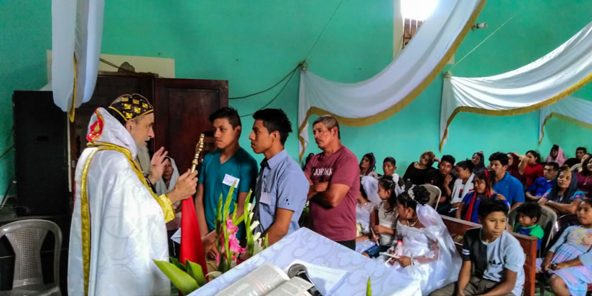 Dentro del amrco de la celebración de la divina liturgia, se administró la confirmación y el envío misionero a dos jóvenes, procedentes de la comunidad de Buxup.
