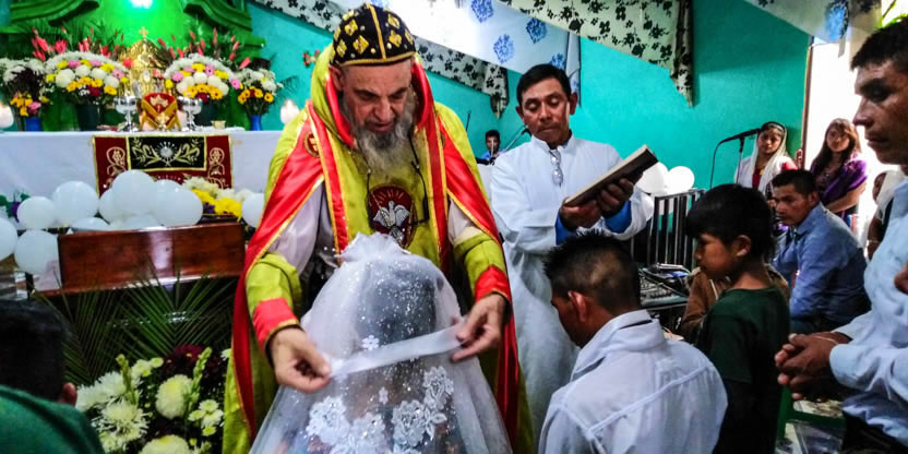 Dentro del marco de la celebración de la divina liturgia en la comunidad de Chuitzanchaj, se administraron los sacramentos de la iniciación cristiana al niño Moisés Jeremías.