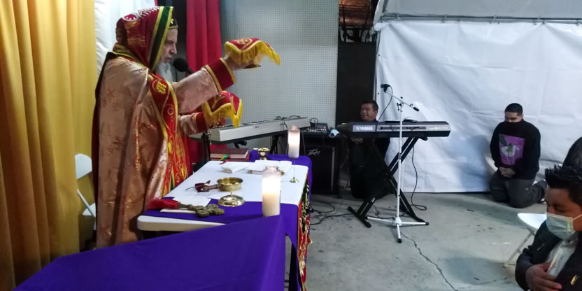 El jueves 18, por la noche, Mor Santiago Eduardo llegó hasta la sede de la Comunidad Ministerio el Pescador, de Los Ángeles, California, para presidir la celebración de la Divina Liturgia.