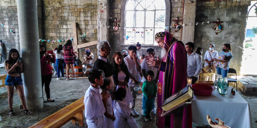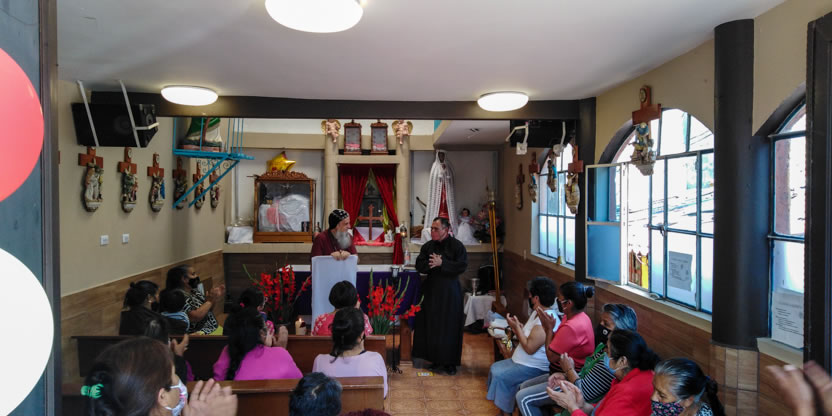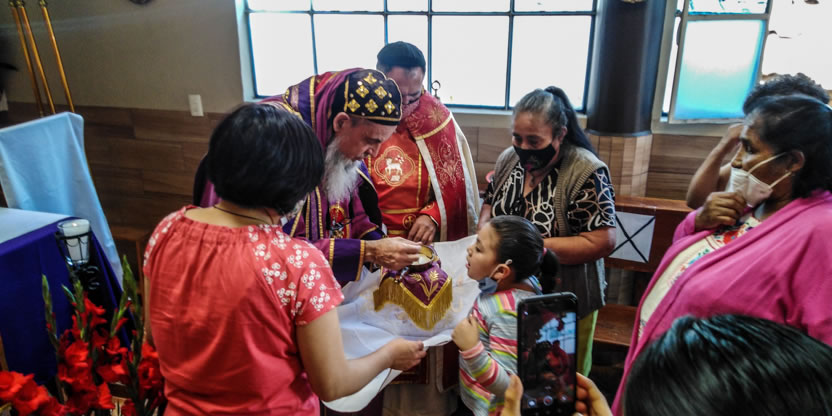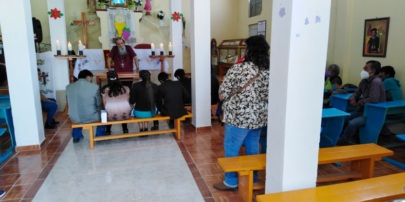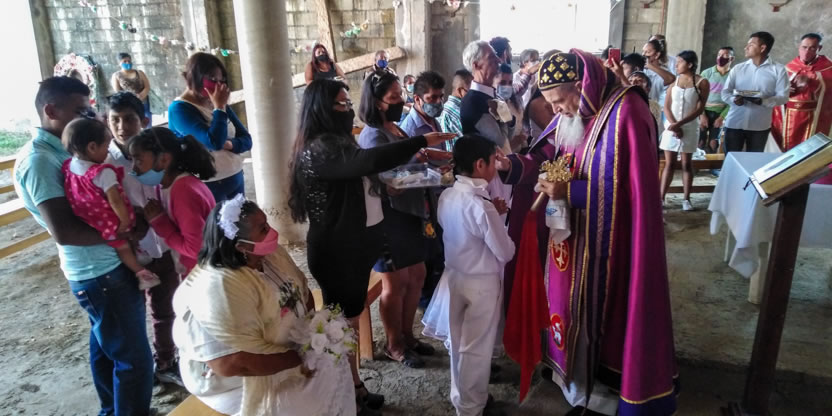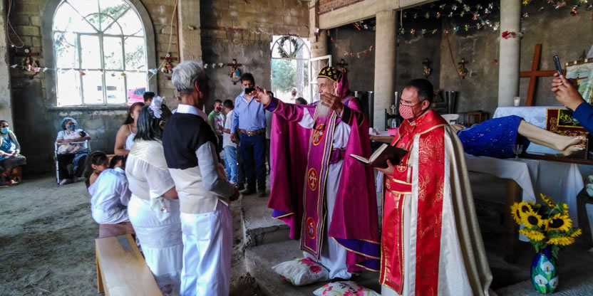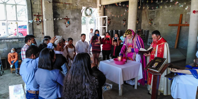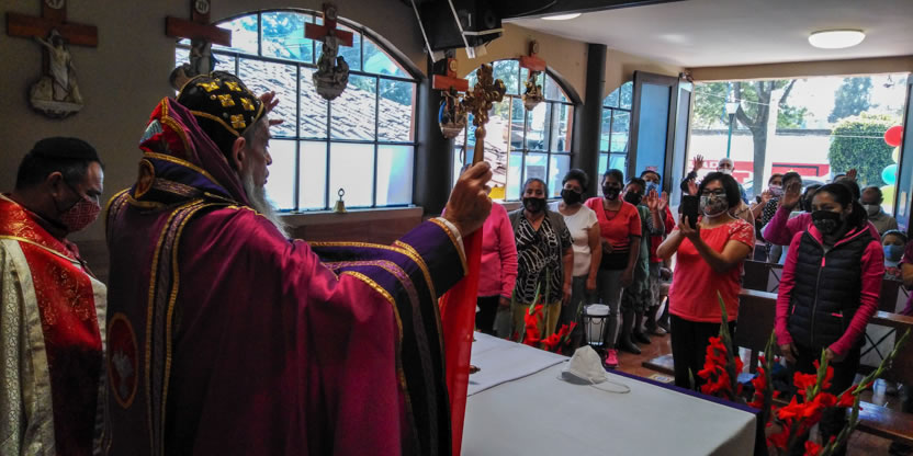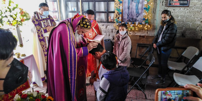 La visita a la comunidad comenzó con la celebración de la divina liturgia en la cual concelebraron los padres Mario López, encargado pastoral local y Vicario de la Vicaría del Centro de México y Dionisio Montiel.