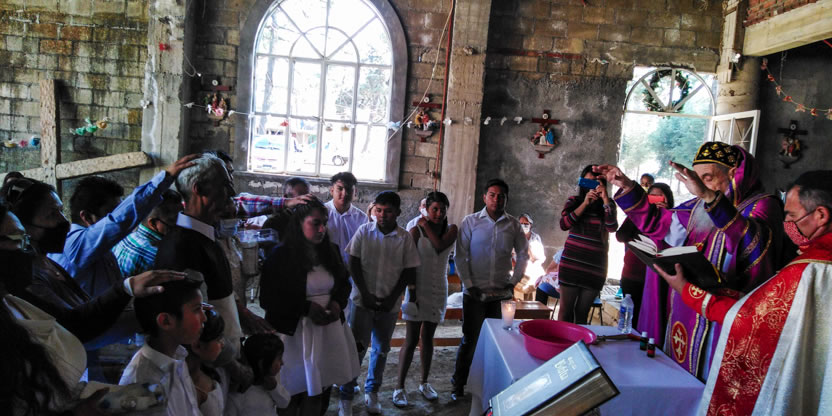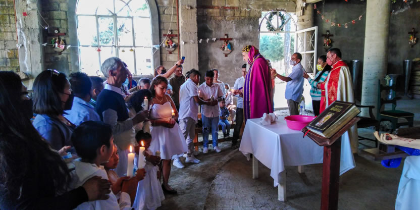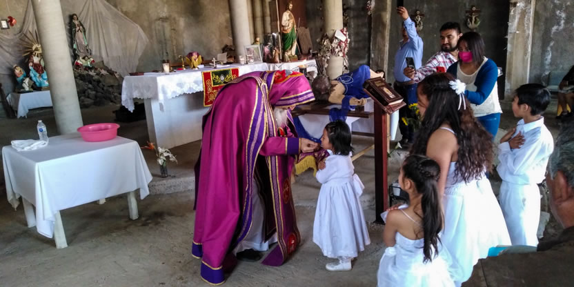 Dentro del marco de la visita al Ajusco, se preparó la celebración de los sacramentos de la iniciación cristiana a cinco hermano, el primero un anciano y los otros jóvenes y niños.