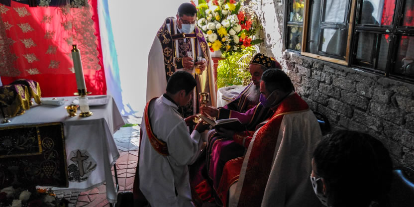 | 28: DIVINA LITURGIA EN LA IGLESIA DE SANTA MARÍA DE LOS LAGOS, COYOTEPEC, EDO. MÉXICO. |