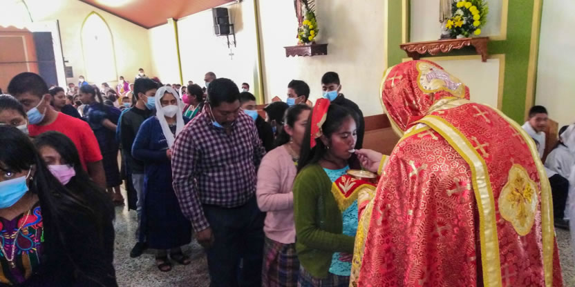 Dentro del marco de la celebración de la divina liturgia, el padre Santos, presentó a cuatro hermanos provenientes de la comunidad de San Andrés Huista, para que recibieran la confirmación y el envío misionero.