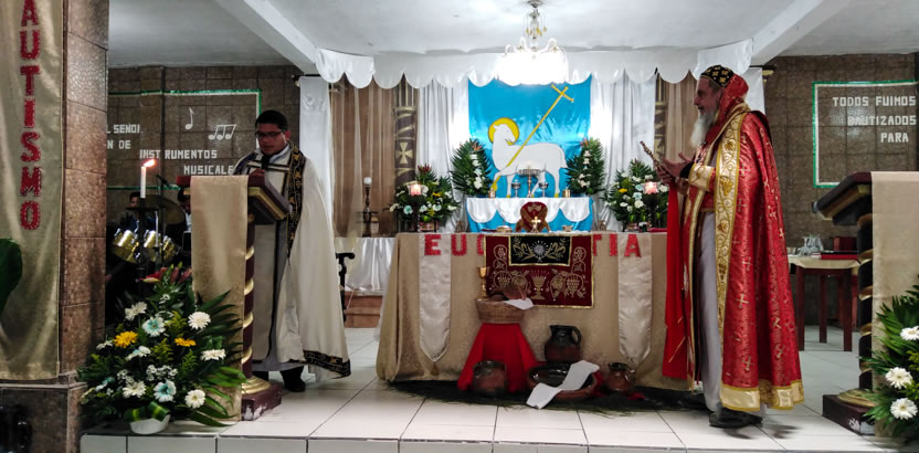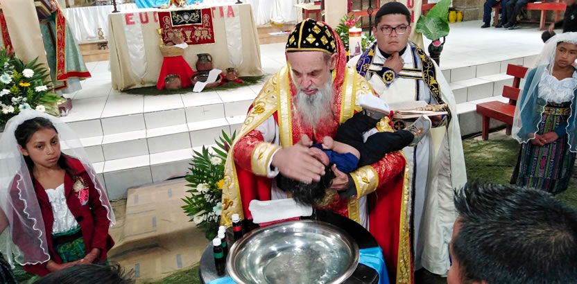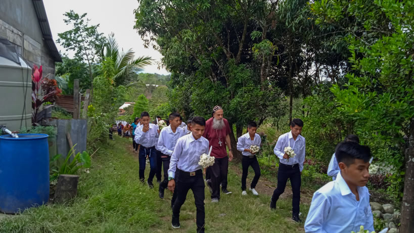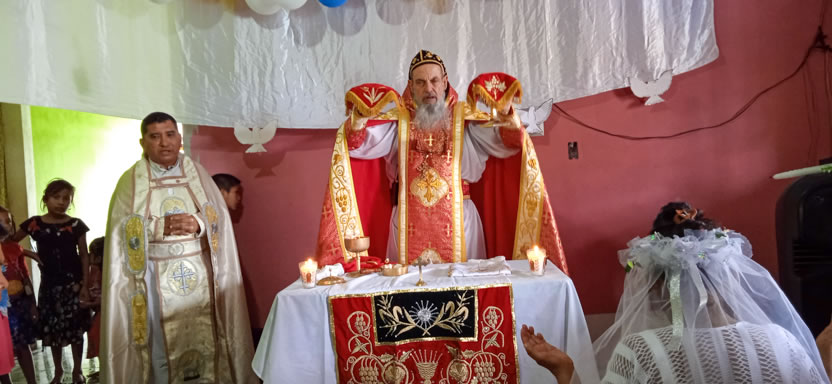 El domingo de resurrección, 4 de abril, el arzobispo llegó hasta la sede del Centro Pastoral de Chicamán, Las Anonas, Chicamán, para presidir la celebración de la divina liturgia con los hermanos.