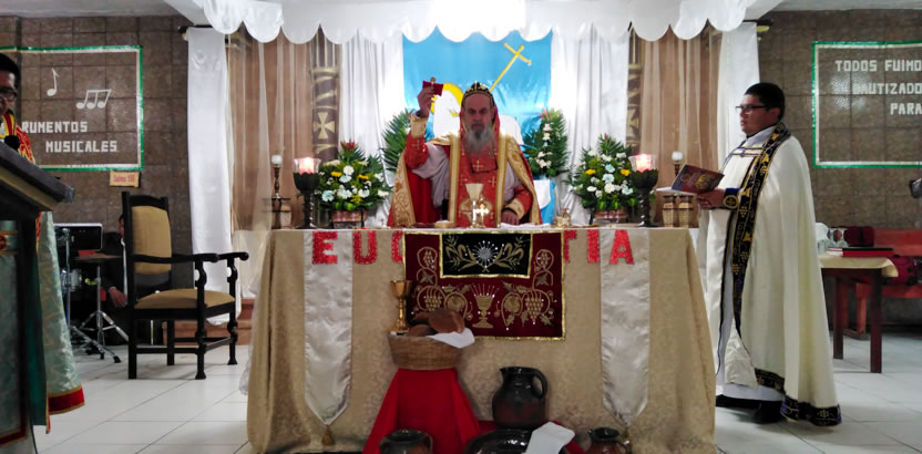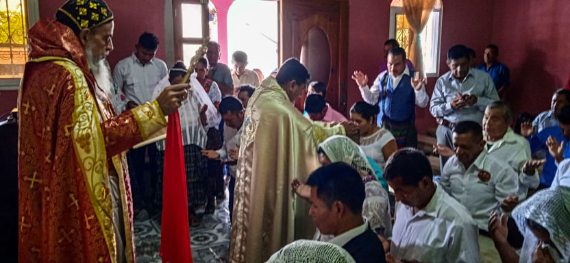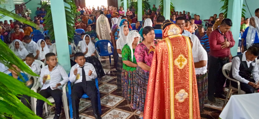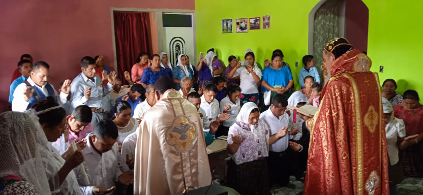Después de ser saludado el arzobispo por los hermanos, presidió la celebración de la divina liturgia, para los hermanos de la comunidad de Zunil y de algunos de la comunidad de Mayaland.