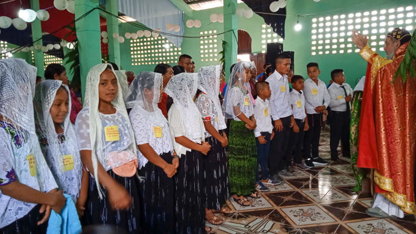 Dentro del marco de la celebración de la liturgia, se administró la confirmación y el envío misionero a cuatro hermanos de la comunidad de Sayajché, Petén.
