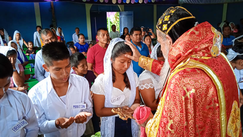 Dentro del marco de la celebración de la divina liturgia, se administró la confirmación y el envío misionero a veintidos hermanos. diecinueve, miembros de la comunidad local y tres de la comunidad de Mayaland.