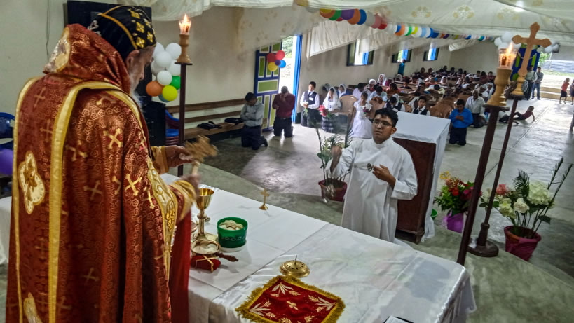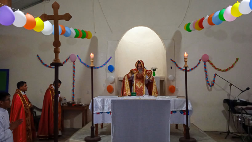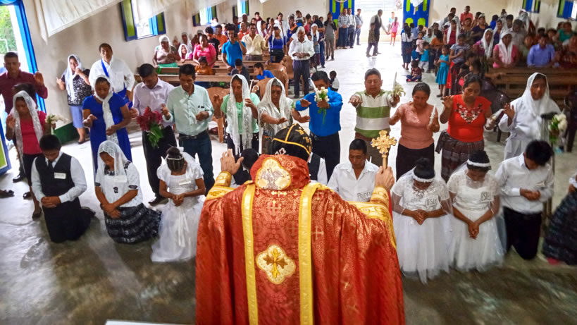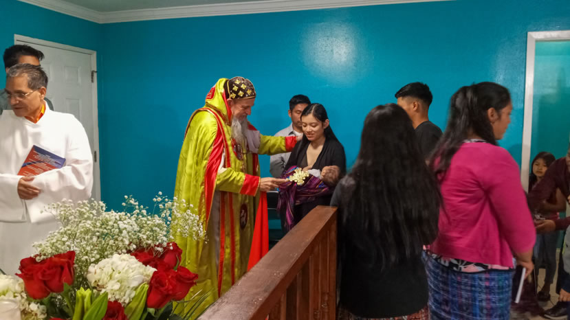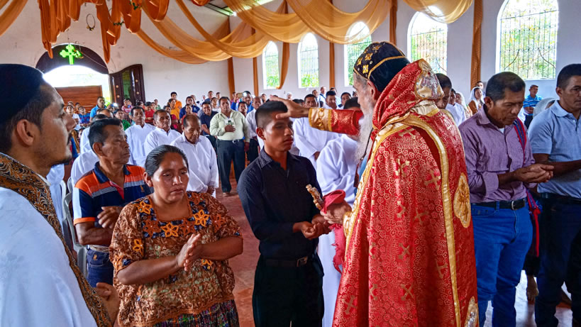 Hacia media mañana, el arzobispo presidió la celebración de la Divina Liturgia, en la que concelebraron los doce presbíteros que ejercen el ministerio en la vicaría del norte de Guatemala.