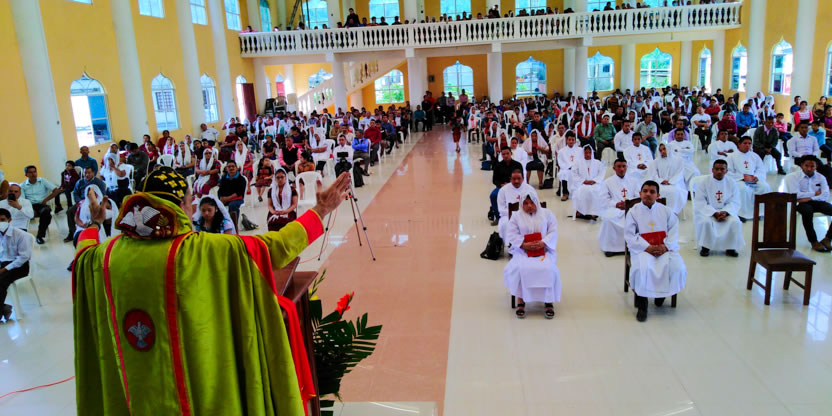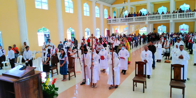 | 19: BENDICIÓN DE CATEQUISTAS DE COMUNIDADES DE LA PARROQUIA GLORIFICACIÓN DE MARÍA, BARILLAS. |