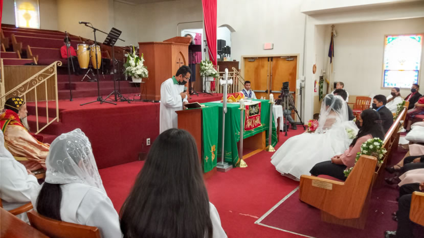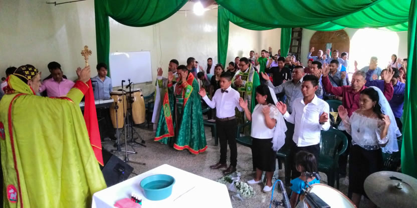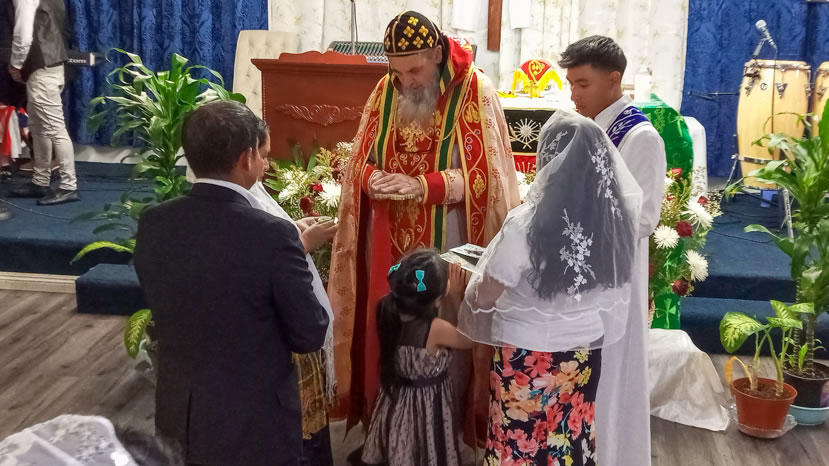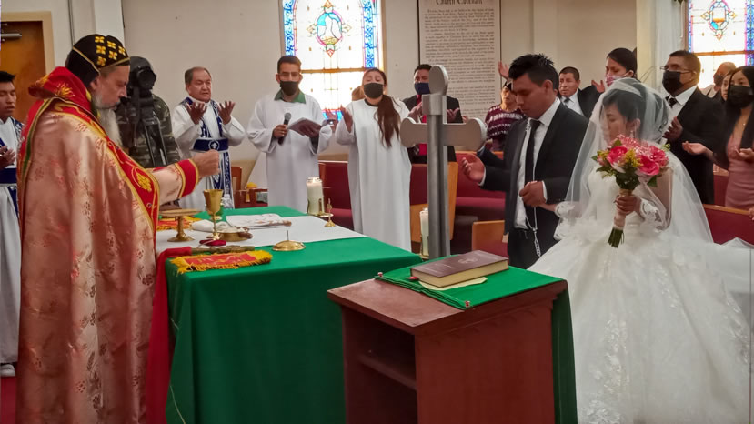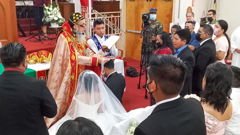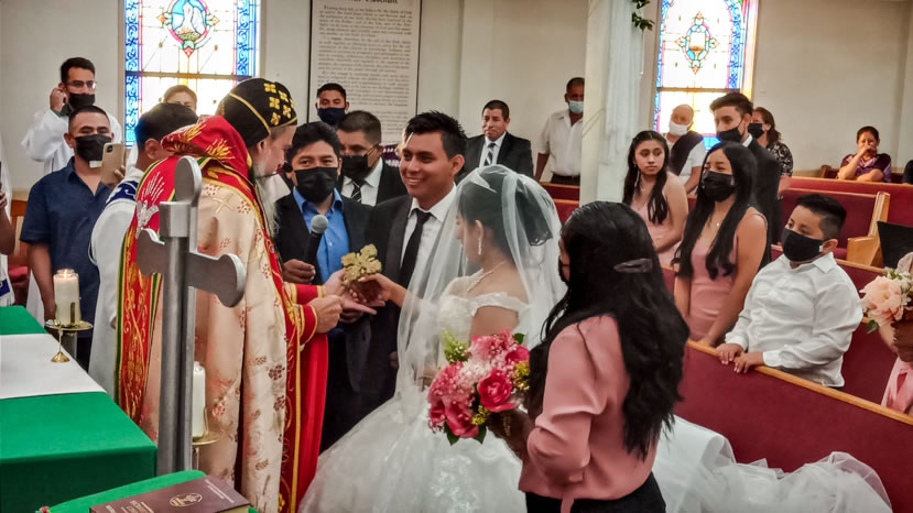 Dentro del marco de la celebración de la divina liturgia en la comunidad de El Pescador, el arzobispo celebró el matrimonio entre Samuel y Ana, después de haber tenido una esmerada preparación.