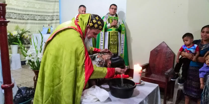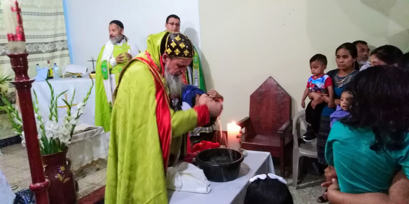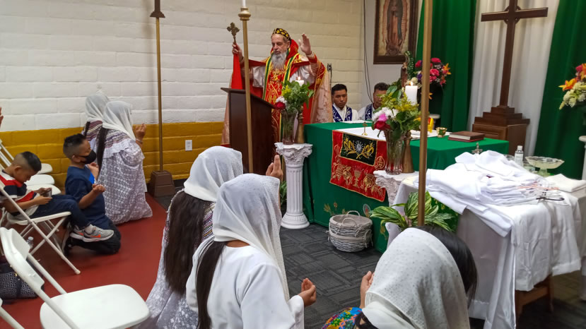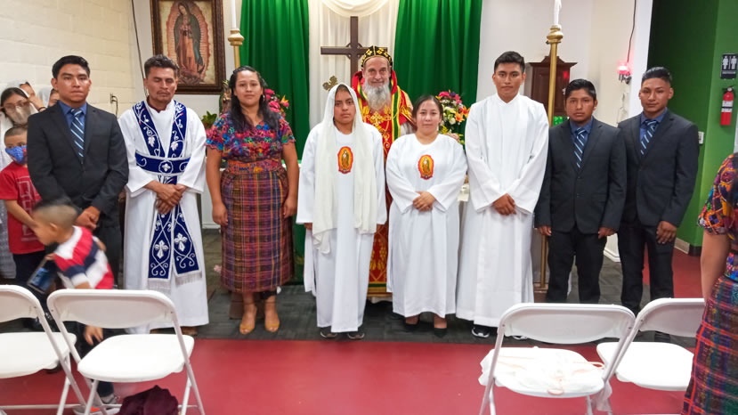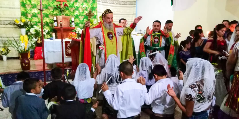 Dentro del marco de la celebración de la divina liturgia a Petatán, se administraron los sacramentos de la iniciación cristiana a ocho hermanos, siete niños y una adulta, madre de dos de las niñas bautizadas.