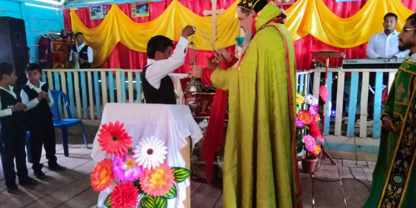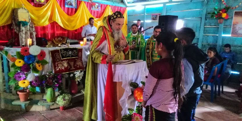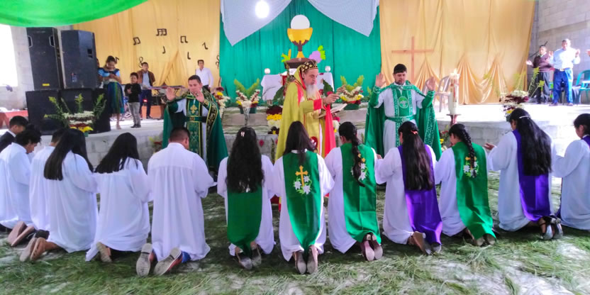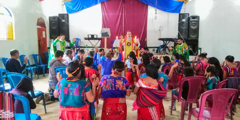 Dentro del marco de la celebración de la divina liturgia, el arzobispo oró y bendijo a los hermanos de la comunidad de Sotzil, implorando al Señor que, llenos del Espíritu Santo puedan vivir y dar testimonio de la fe.