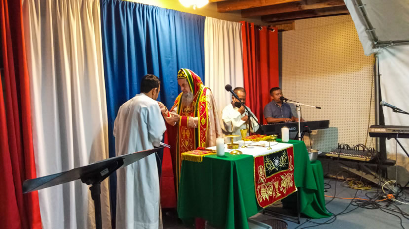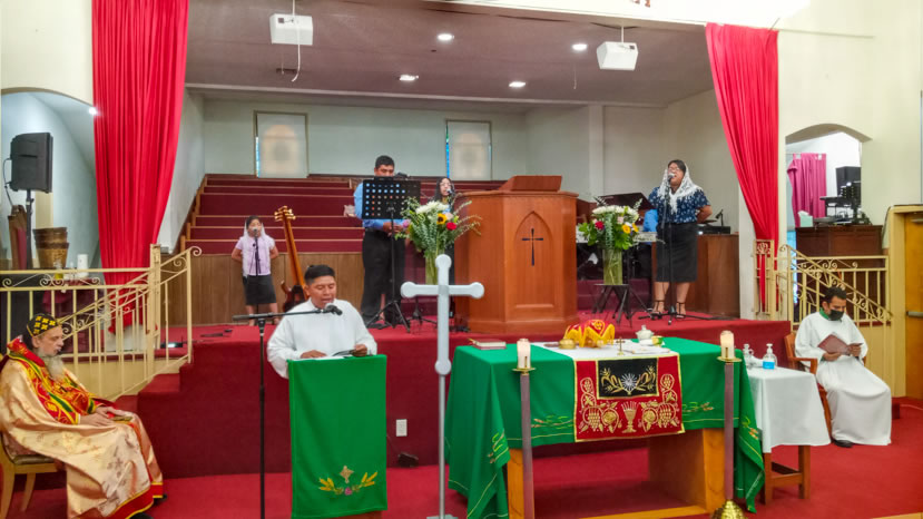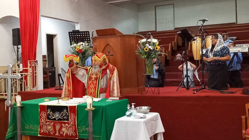 A media tarde del domingo primero de agosto, el arzobispo presidió la celebración de la divina liturgia, en la cual concelebró el padre Óscar Guardado, párroco local.