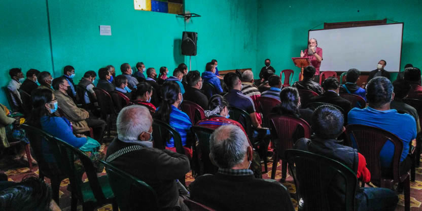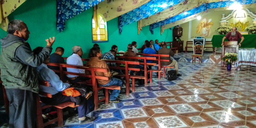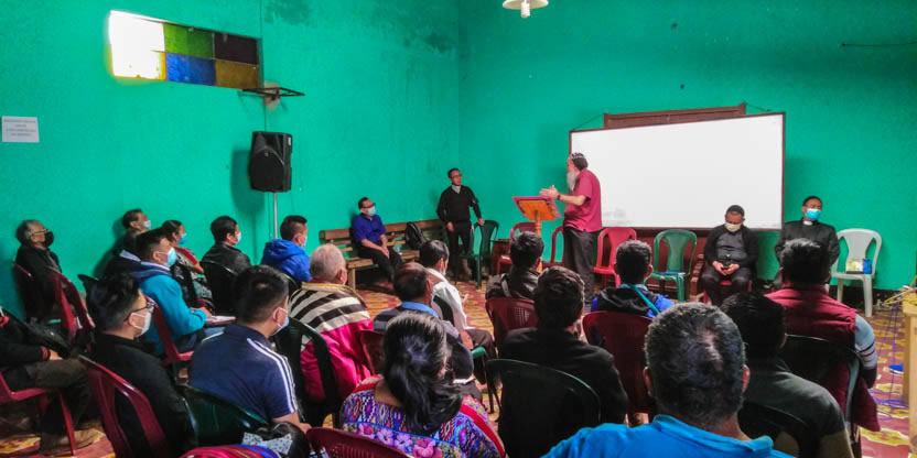 Después de escuchar las diferentes inquietudes los los hermanos dirigentes de las comunidades de San Juan Atitán, el arzobispo procedió a impartires una breve formación sobre temas litúrgicos.