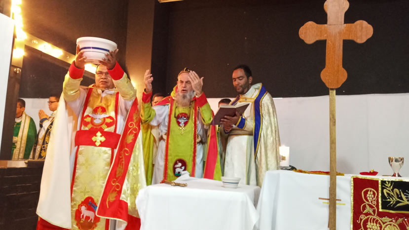 Al final de la tarde, en un ambiente de oración, el arzobispo presidió la oración en la que hizo la mixtura del Santo Crisma que, proveniente del Patriarcado, tiene aún continuidad con el primer Santo Crisma que fue consagrado por los apóstoles.