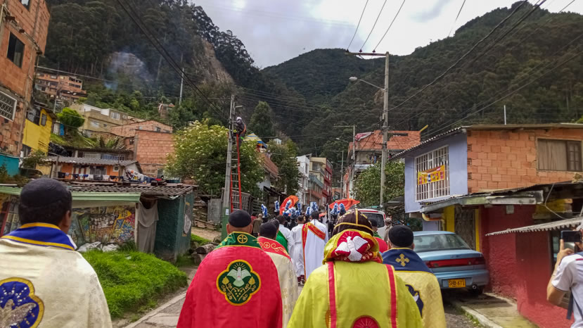 El sábado 11, por la mañana, el arzobispo junto a los presbíteros de la vicaría de Colombia, llegaron al ingreso de la comunidad Bosques de Calderón, en donde se llevaría a cabo una visita pastoral.
