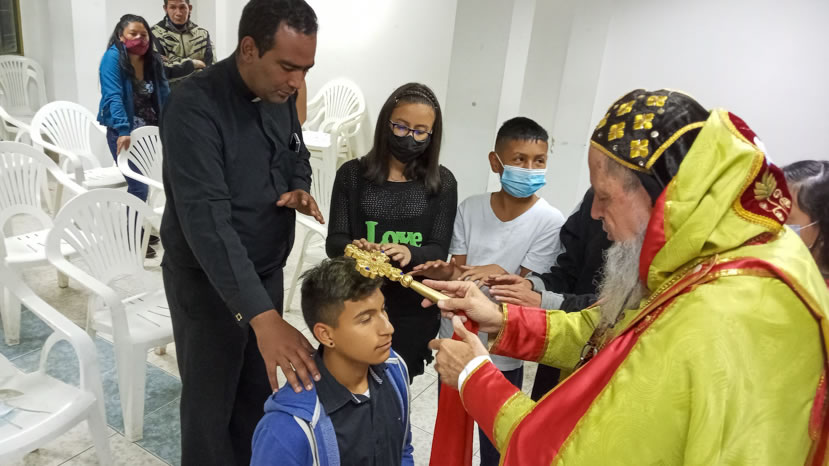 Dentro del marco de la celebración de la divina liturgia, también se administró la confirmación y el envío misionero a tres hermanos, miembros de la comunidad.