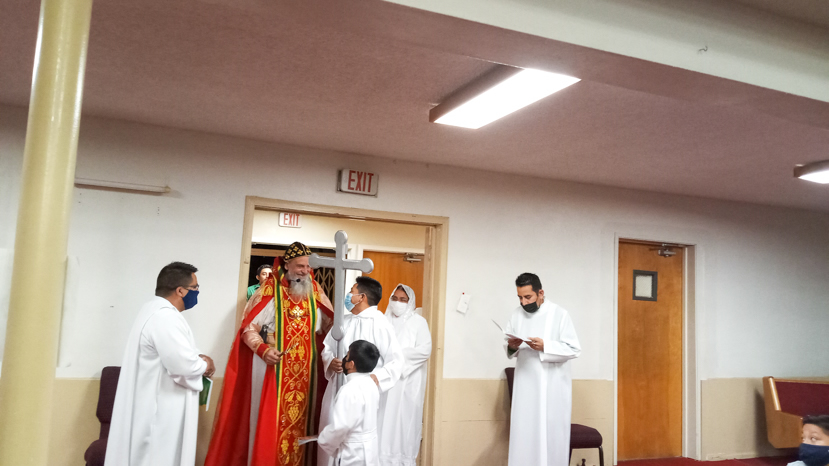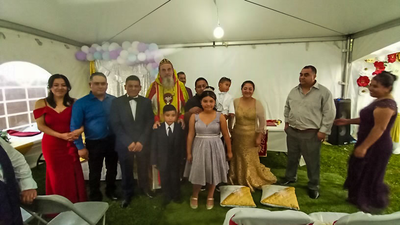 Dentro del marco de la celebración de la divina liturgia, se administraron los sacramentos de la iniciación cristiana a cuatro hermanos: un adulto, Jonathan, cuyo matrimonio también sería celebrado, sus dos hijos, y el hijo de otra familia, cuyo matrimonio había celebrado en la primera visita que el arzobispo había hecho a la comunidad.