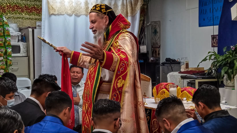 El miércoles a mediodía llegó el arzobispo a Los Angeles, procedente de Guatemala y, después de ocuparse en asuntos tendientes a la consecución del templo para que tenga sus sede la parroquia de California San Miguel Arcángel, por la noche, presidió la celebración de la divina liturgia en la comunidad Pacto Divino de Los Angeles.