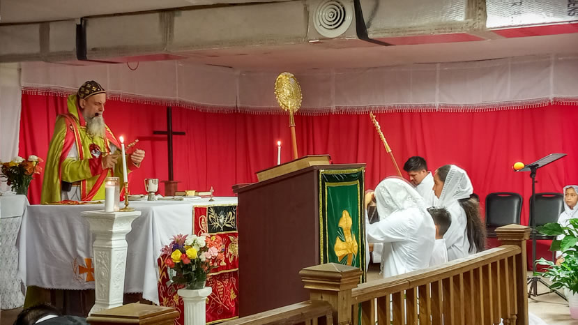 Después de la formación y de los diálogos, el arzobispo presidió la celebración de la divina liturgia dominical para los hermanos que estaban participando en la visita pastoral.