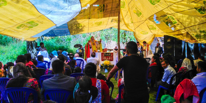 En Pojón, el arzobispo presidió la celebración de la divina liturgia para todos los fieles, lo cuales participaron con gran devoción y en un número muy elevado.