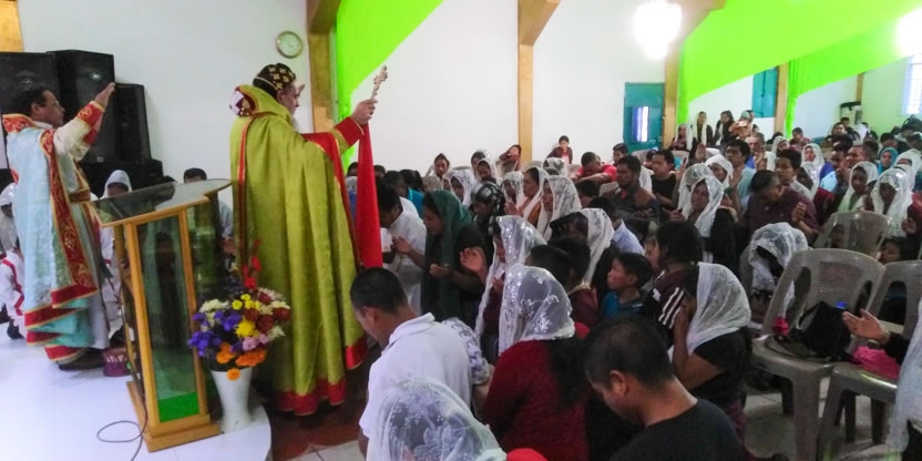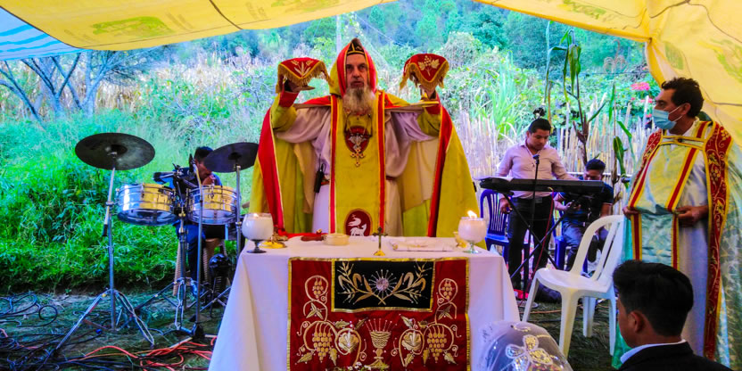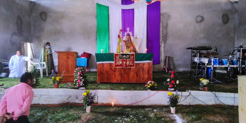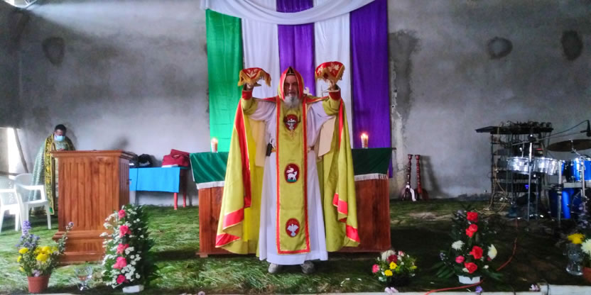 Después de la bendición del templo, el arzobispo presidió la celebración de la divina liturgia para los miembros de la comunidad de Santo Domingo Guaixná.