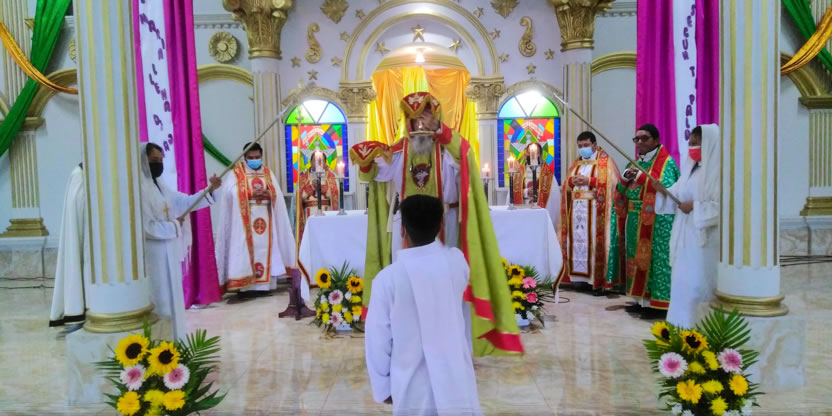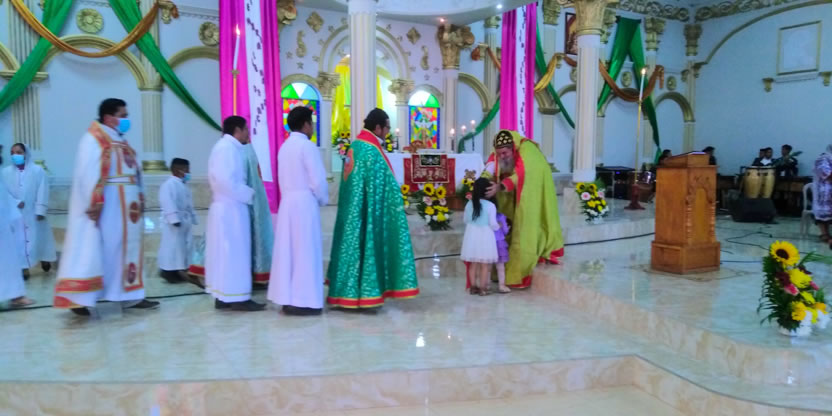 Poco antes del mediodía, dio inicio la celebración de la divina liturgia presidida por el arzobispo y en la que concelebraron seis presbíteros que ejercen el ministerio en el área cubierta por el decanato: los padres Fredi, Bernabé, Julio, Juan Arcadio, Matías y el Padre Henry del seminario que, actualmente está colaborando en la parroquia de Soloma.