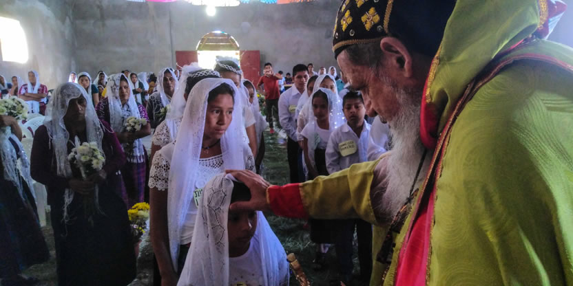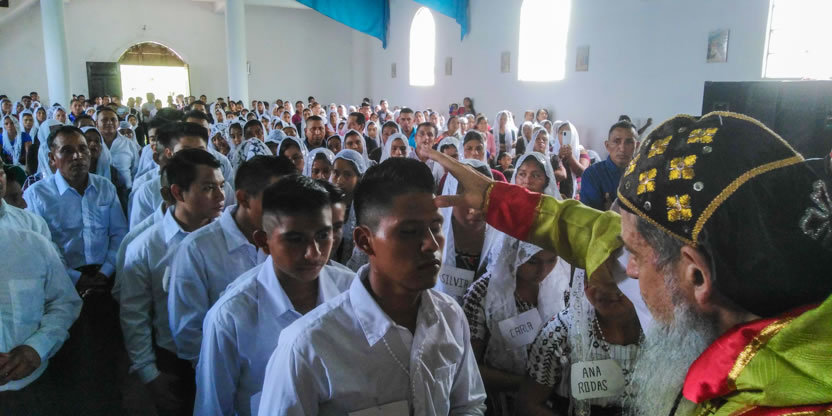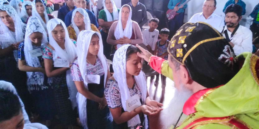 Dentro del marco de la celebración de la divina liturgia, se administró la confirmación y el envío misionero a veinte hermanas, miembros de la comunidad de Santo Domingo Guaixná.