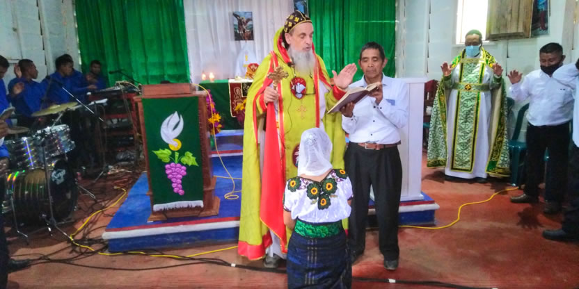 El martes 26 de octubre, por la mañana, el arzobispo llegó hasta la comunidad de Racaná, del Centro Pastoral de Santa María Chiquimula, Totonicapán, acompañado del Padre Santo, Encargado Pastoral y del diácono Lorenzo, asistente del arzobispo, para celebrar la divina liturgia.