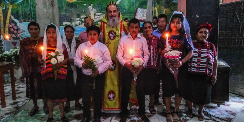 Dentro del marco de la celebración de la divina liturgia, se administraron los sacramentos del bautismo, la crismación y la primera comunión a cinco niños de la comunidad de San José Ixcunén.