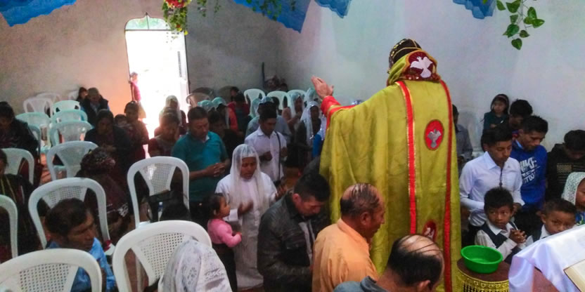 Hacia el final de la mñana, el arzobispo presidió la celebración de la divina liturgia para hermanos de la comunidad de Salquilito, del municipio de Nebaj, El Quiché.