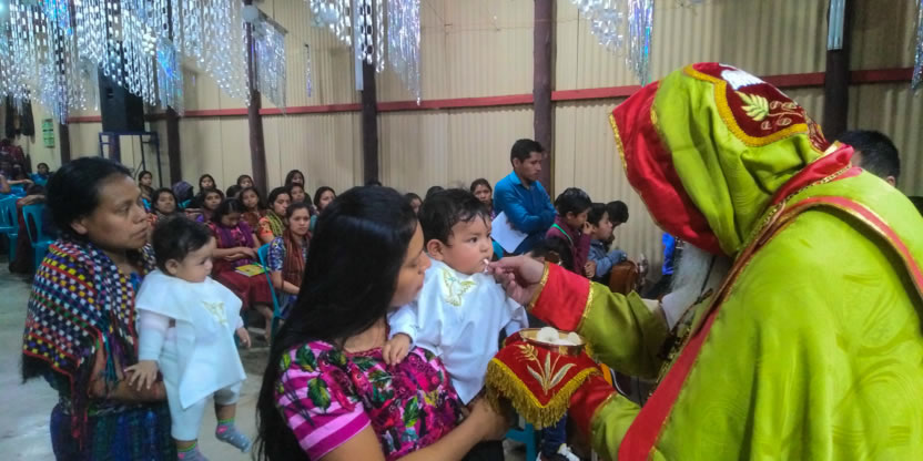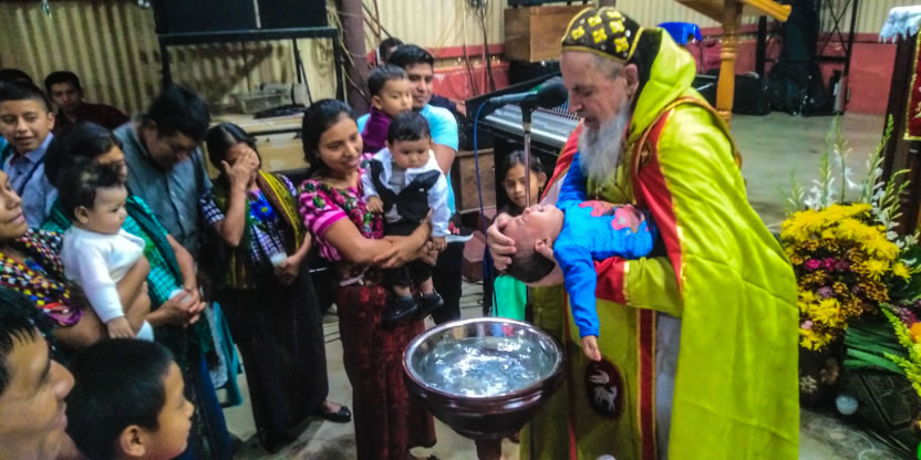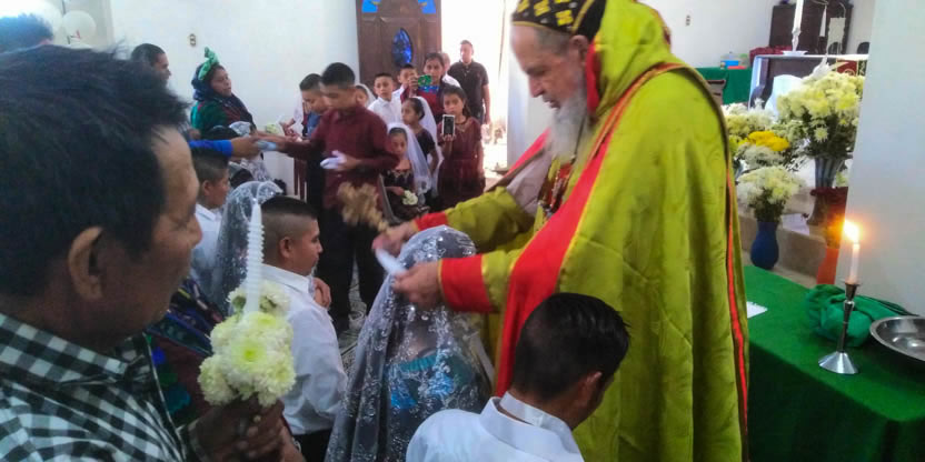 Dentro del marco de la celebración de la divina liturgia, se administraron los sacramentos del bautismo, la crismación y la comunión a la niña Petrona Yolanda.